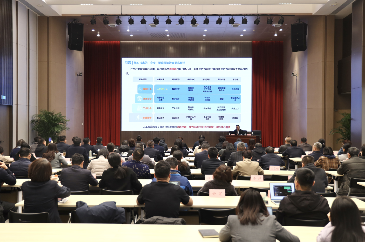 鄧克銳以“搶抓人工智能布局窗口,重塑企業(yè)發(fā)展競爭力”為主題,結(jié)合自身三十余年通信與信息技術行業(yè)經(jīng)驗,從“人工智能是什么”“人工智能干什么”“人工智能怎么干”三個維度,系統(tǒng)闡述了人工智能的本質(zhì)、基本原理、發(fā)展歷程以及對人類工作生活的影響。他圍繞“算力、數(shù)據(jù)、模型、應用、資金、人才”六大核心領域,對當前國內(nèi)人工智能政策進行了解讀,分析企業(yè)發(fā)展人工智能相關產(chǎn)業(yè)的實施路徑和必要性,也為城投集團通過人工智能賦能產(chǎn)業(yè)升級,推動企業(yè)轉(zhuǎn)型發(fā)展提出了切實可行的建議。