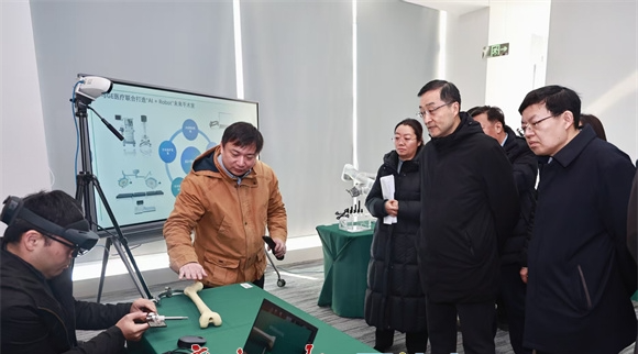 在山東省腫瘤醫(yī)院重離子硼中子項目,劉強實地察看了項目建設(shè)進展,詳細了解中核粒子等項目招引情況,強調(diào)要堅持高標準建設(shè)、高水平運營,確保項目早建成、早投用。在醫(yī)療硅谷,劉強詳細了解片區(qū)項目引進落地情況,指出要強化統(tǒng)籌規(guī)劃與產(chǎn)業(yè)協(xié)同,加快形成“醫(yī)、研、產(chǎn)、服”一體化發(fā)展格局。在南北三號路涉鐵段項目,劉強實地察看工程進展,要求加快打通斷點堵點,提升區(qū)域交通建設(shè)管理水平。在精準醫(yī)學(xué)產(chǎn)業(yè)園,劉強察看中韓醫(yī)療服務(wù)產(chǎn)業(yè)合作平臺建設(shè)進展,強調(diào)要聚焦前沿醫(yī)學(xué)技術(shù)攻關(guān)與產(chǎn)業(yè)化融合,切實將科技優(yōu)勢轉(zhuǎn)化為產(chǎn)業(yè)發(fā)展動能。在錦瑟醫(yī)療和強腦科技項目,劉強實地了解腦機接口等前沿技術(shù)的研發(fā)應(yīng)用進展,強調(diào)要支持企業(yè)與醫(yī)療機構(gòu)深化合作,推動產(chǎn)業(yè)鏈上下游協(xié)同聯(lián)動。