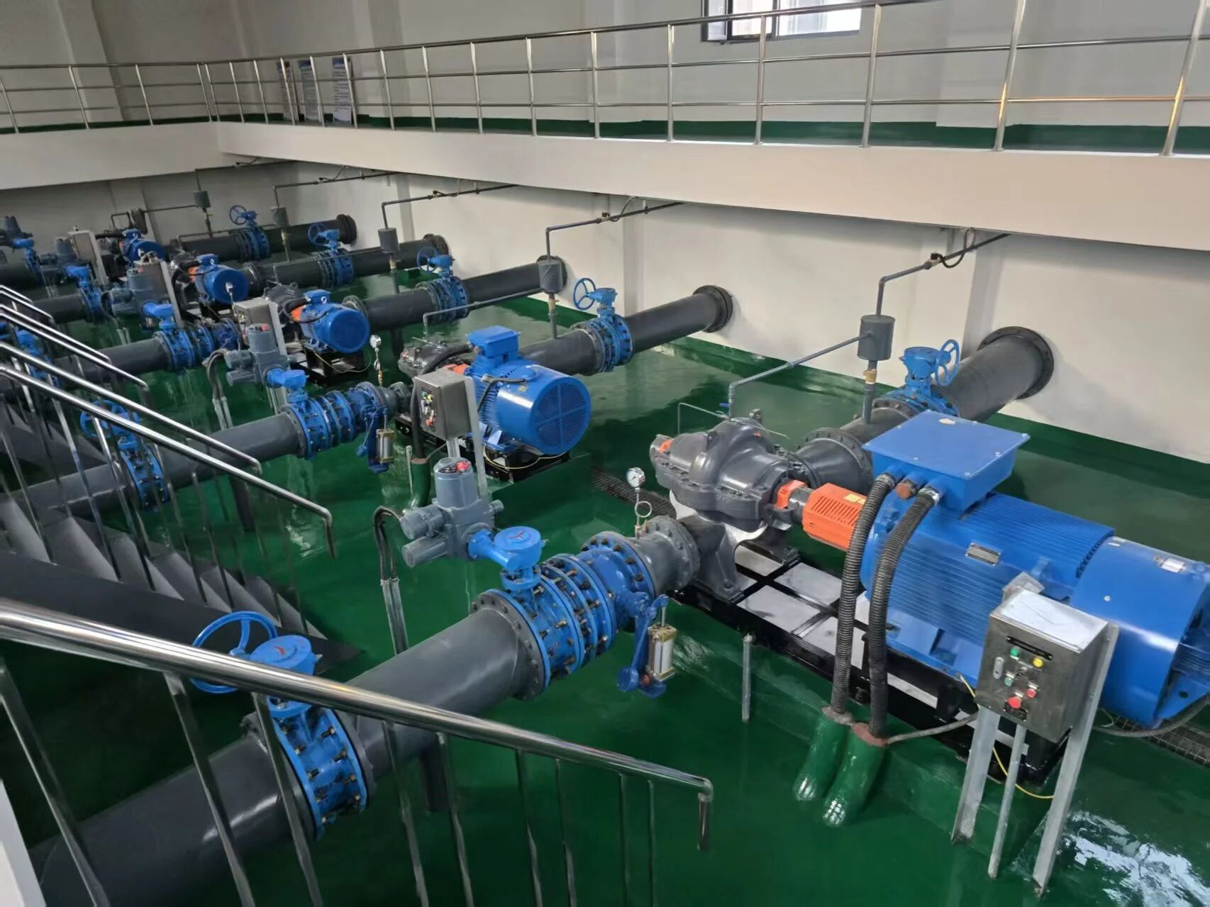 評(píng)估組認(rèn)真聽取了匯報(bào),詳細(xì)了解了濟(jì)南市2022年再生水利用工程的整體建設(shè)內(nèi)容。隨后,評(píng)估組深入泵站生產(chǎn)車間,實(shí)地察看機(jī)組及高、低配變電設(shè)備的運(yùn)行狀態(tài)。最后,評(píng)估組在調(diào)度中心通過(guò)中控平臺(tái)查看了機(jī)組實(shí)時(shí)運(yùn)行數(shù)據(jù),并直觀了解龍脊河上游、大辛河下游補(bǔ)水口的現(xiàn)場(chǎng)補(bǔ)水實(shí)況。